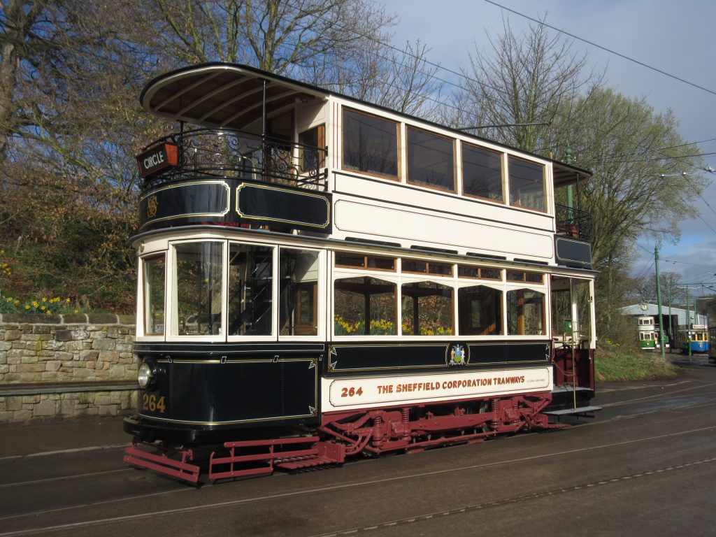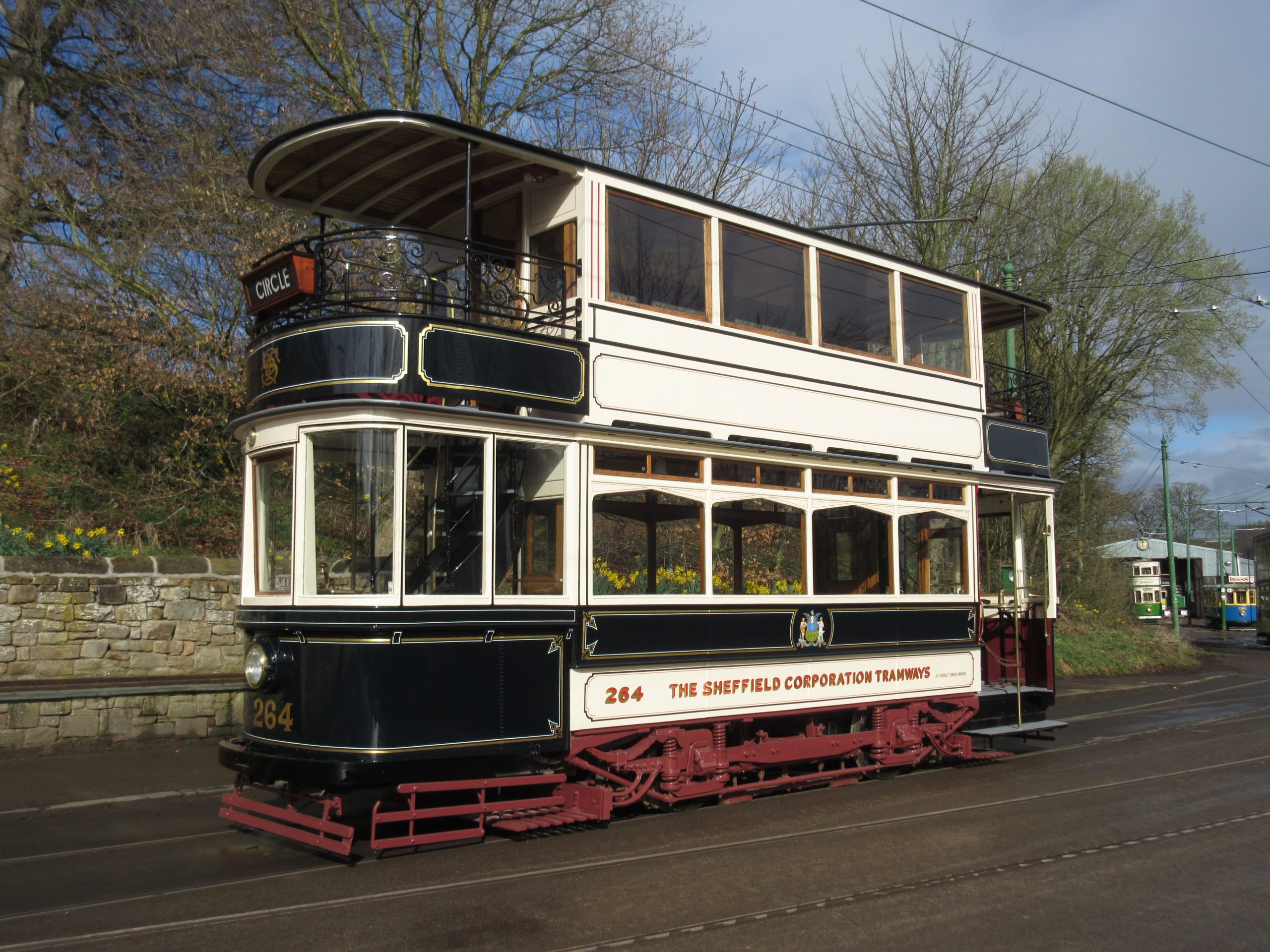 Below: For many years during their operation at Beamish, Gateshead 10 and Sheffield 264 were actually on loan to the museum, having been saved originally for the British Transport Commission collection (264 having also been displayed at the Clapham Transport Museum, predecessor of the National Railway Museum, and Gateshead 10 was stored with other BTC artefacts at Clay Cross in Derbyshire). Their ownership was eventually transferred to Beamish, in recognition of their long service at the museum and appropriateness to the museum tramway here.