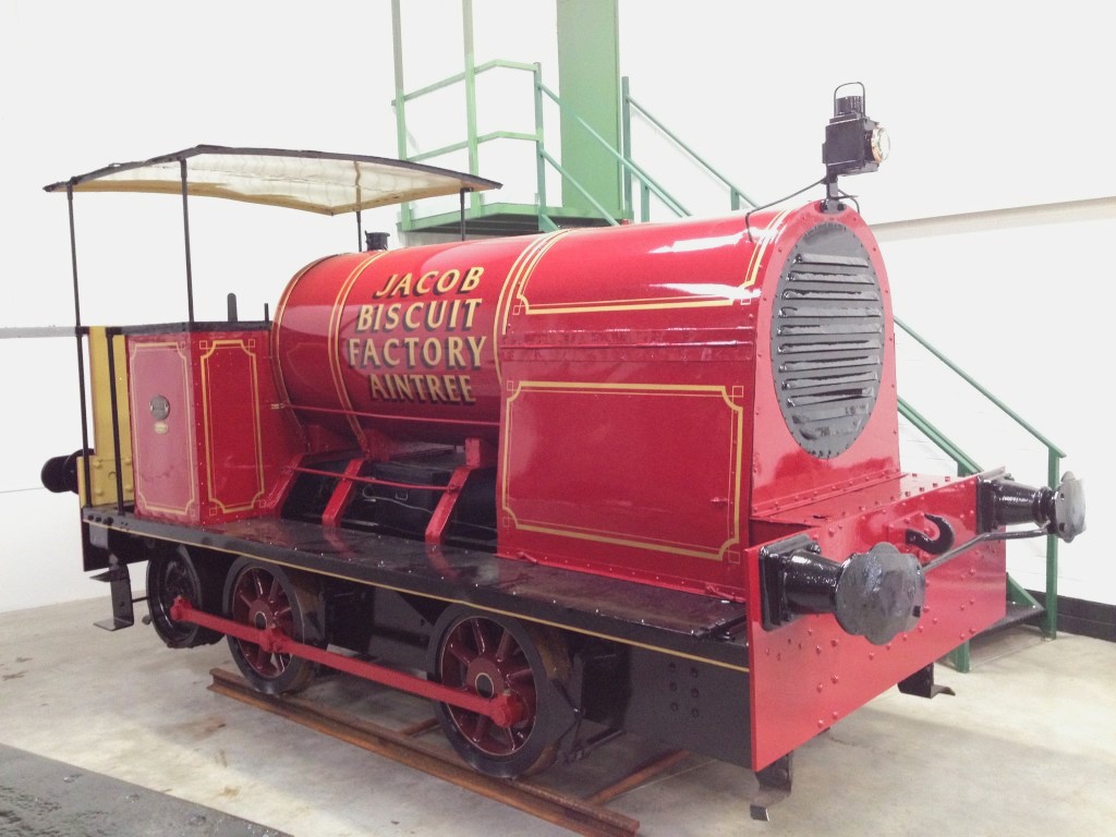 Below: In 2011 this Baguley/McEwen Pratt petrol locomotive, works number 680 built in 1916, was transferred to the Statfold Barn Railway Trust. The locomotive had been an early artefact in the Beamish collection, but was immediately placed on loan to the Bahamas Locomotive Society and displayed at Dinting Railway Centre until the site there closed in 1990. Jacob (as the locomotive was named – due to it’s longest owner in industrial use being the Jacob Biscuit Factory) was then moved to Beamish. Whilst complete, it was unrestored and in deteriorating condition and with no link to the north east, and of no practical operational use at Beamish, it was transferred to Statfold Barn, close to the locomotives place of manufacture. There, it was restored to the condition shown below, and it remains on display at Statfold Barn.