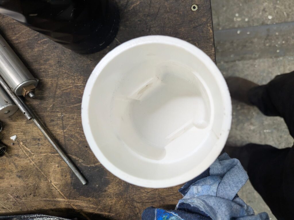 Below: Sam 3D printed a slightly enlarged piston, which was fitted into one of the cylinders to establish what the clearance for it would allow. Here is the design, being worked up ready for printing.