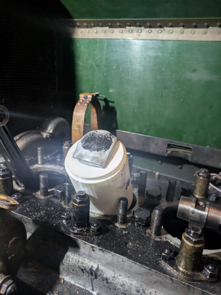 Below: With the locomotive being partially dismantled to gain access to the the first round of stored bits. The intention is to clean as much as we can when it’s removed then Vaseline/oil/grease to protect, then assembly is a nice job!