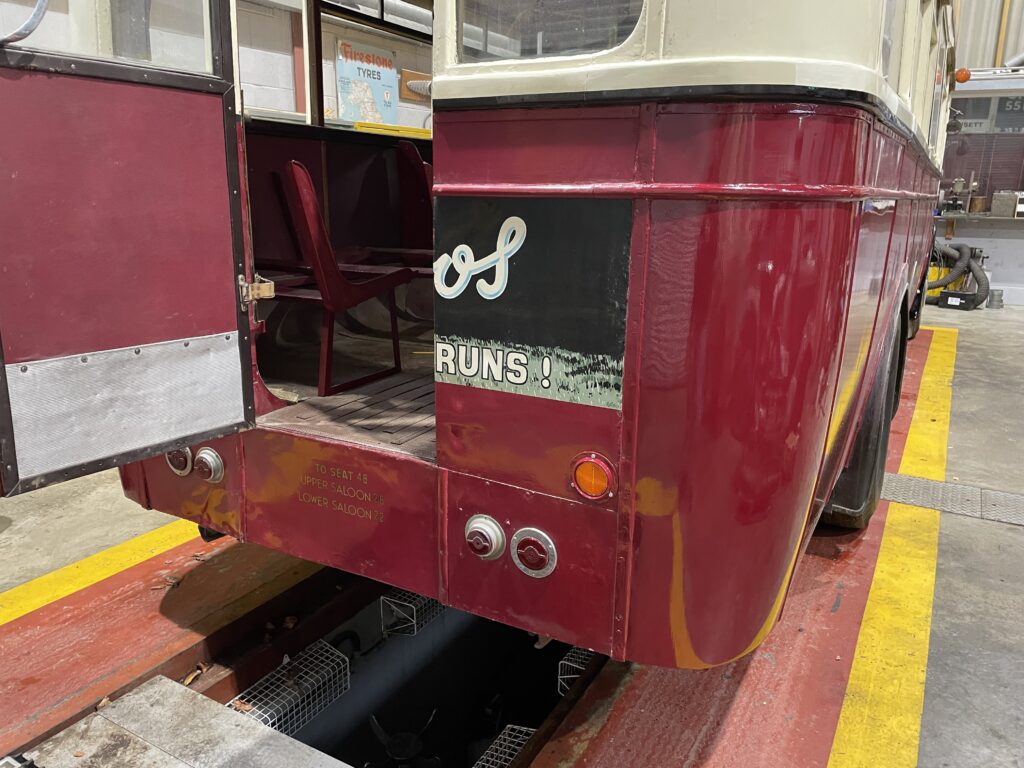 Below: Work on West Hartlepool 36 has continued, with the repaired exterior panels painted and the saloon electrical system receiving attention. The seats have been removed and sent to Liverpool Coach Trimmers for re-upholstering.