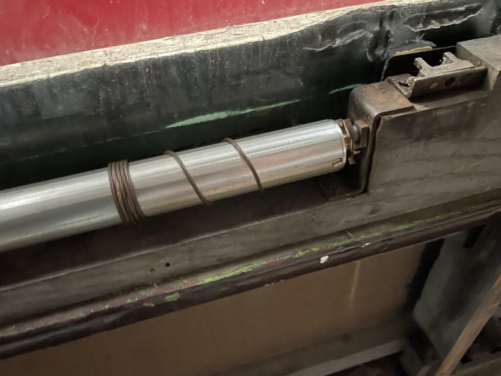 Below: A close-up view of one of the new cylinders complete with the wire that connects the window to the mechanism and can wind on/off the cylinder. The ratchet can be seen here, engaged with a fixed pawl on the mounting bracket.