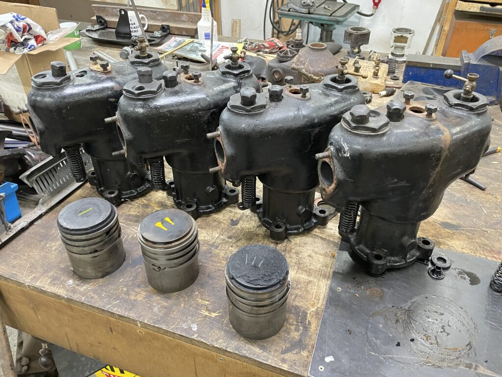 Below: The cylinders – separate castings with no ‘head’, as is conventional on later engines. Evidence of dual ignition has prompted a revision to the winter plan to look at including this within the work being undertaken, and also to look at whether a small pump to pressurise the fuel tank can be replicated/reproduced as well.