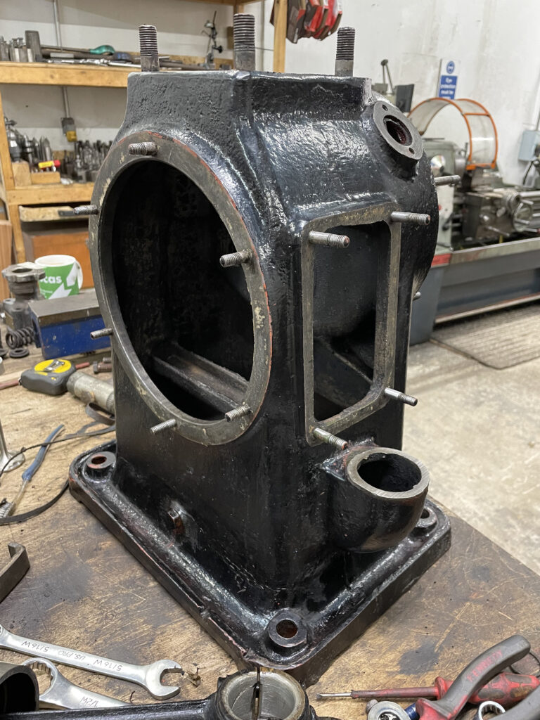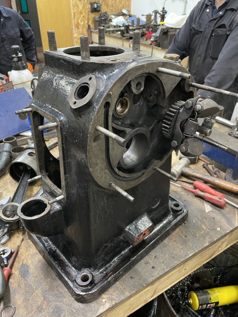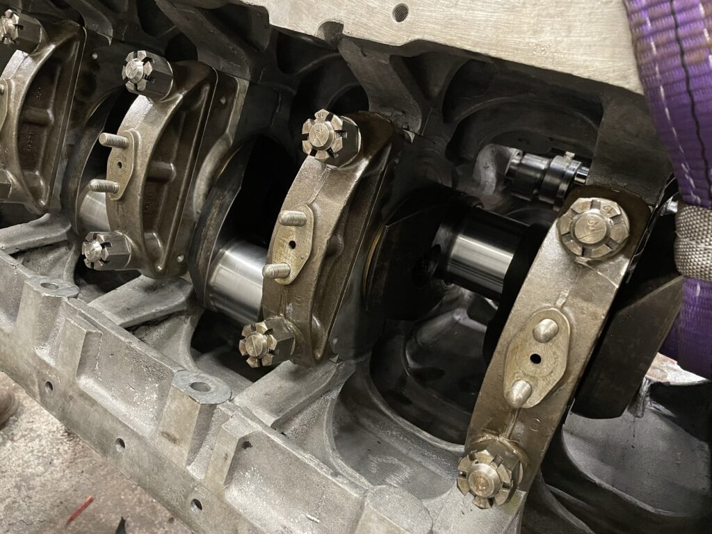 Below: The overhauled engine block has arrived from the contractor and Phil and Phil have already started to reassemble the engine for 220. Here the crankshaft is seen in place.