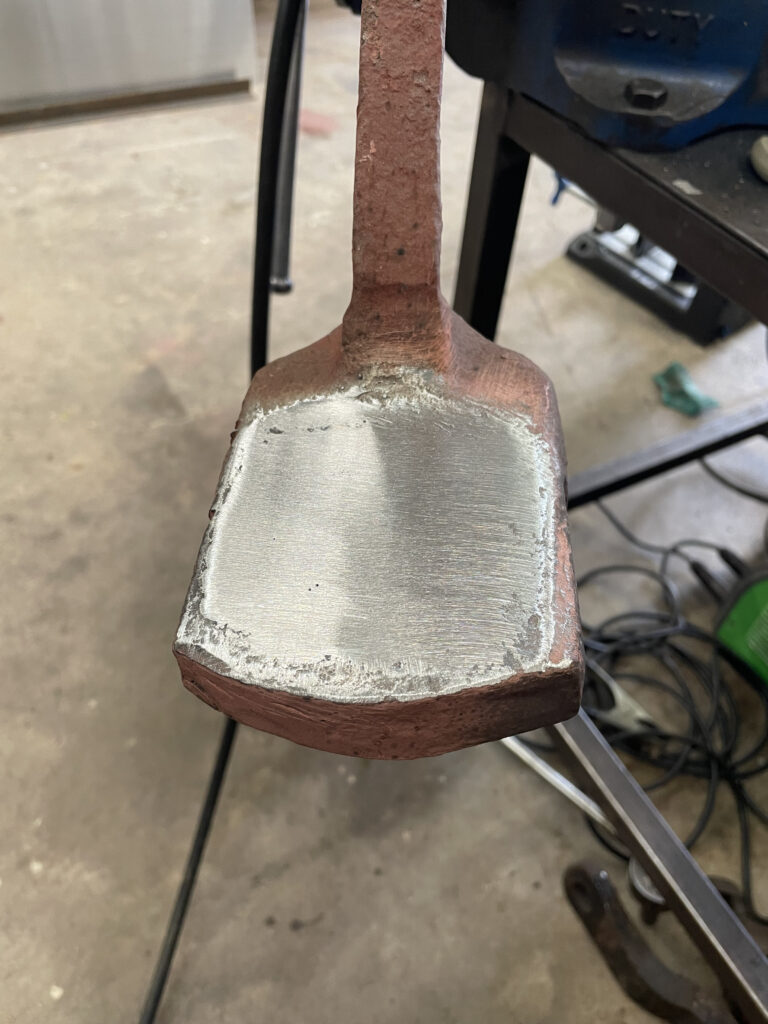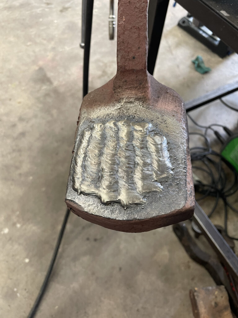 Below: The welds are then applied systematically to remove the hole and also surface degradation.