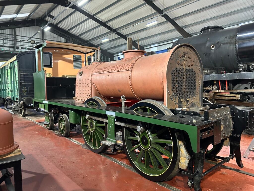 Below: Some photos taken just before Christmas of Dunrobin showing the boiler in position in the frames, as work on a number of fronts continues to ready it for steam test. The view also shows one of the new brake blocks in place. The engineering team has spent some time on overhauling and assembling the valve/piston rod glands as these are not the more familiar (to us at Beamish) follower and stuffing box arrangement, but are assembled from multiple components that allow adjustment against each other to remain steam tight.