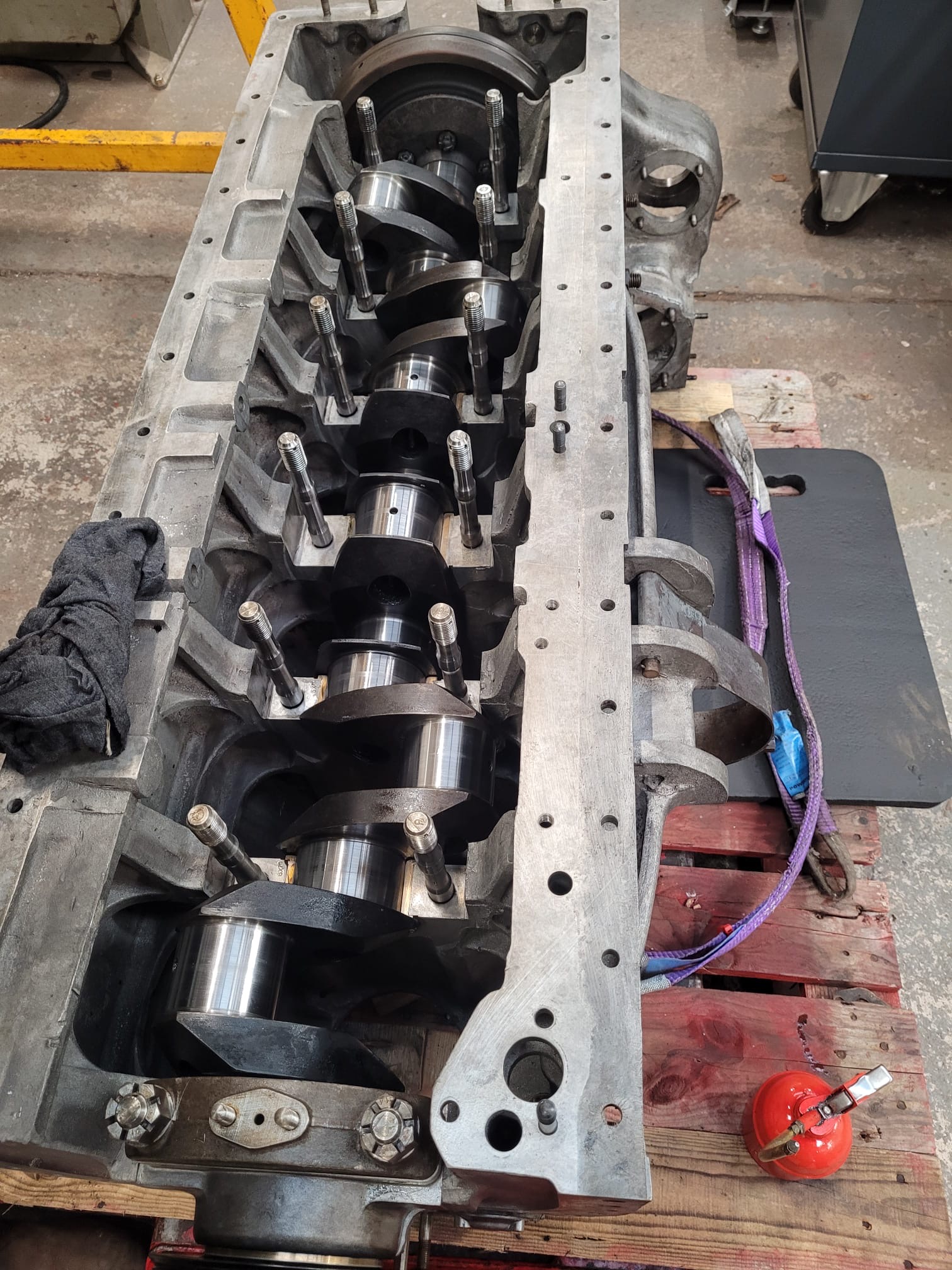 Below: The overhauled engine block has arrived from the contractor and Phil and Phil have already started to reassemble the engine for 220. Here the crankshaft is seen in place.