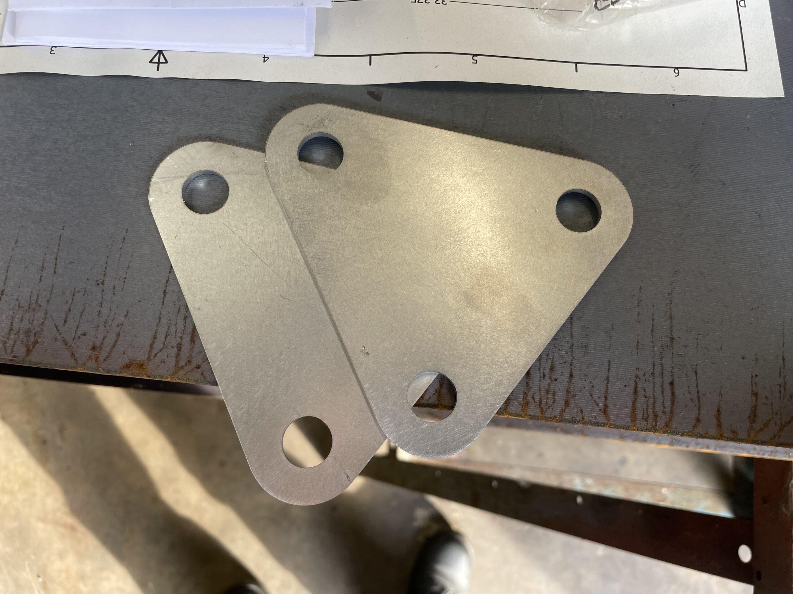 Below: As part of the process of replacement of spanwires, new clevis links have been designed and laser-cut from stainless steel (for longevity and future ease of dismantling). Here are examples of the two into one (or one into two) links.