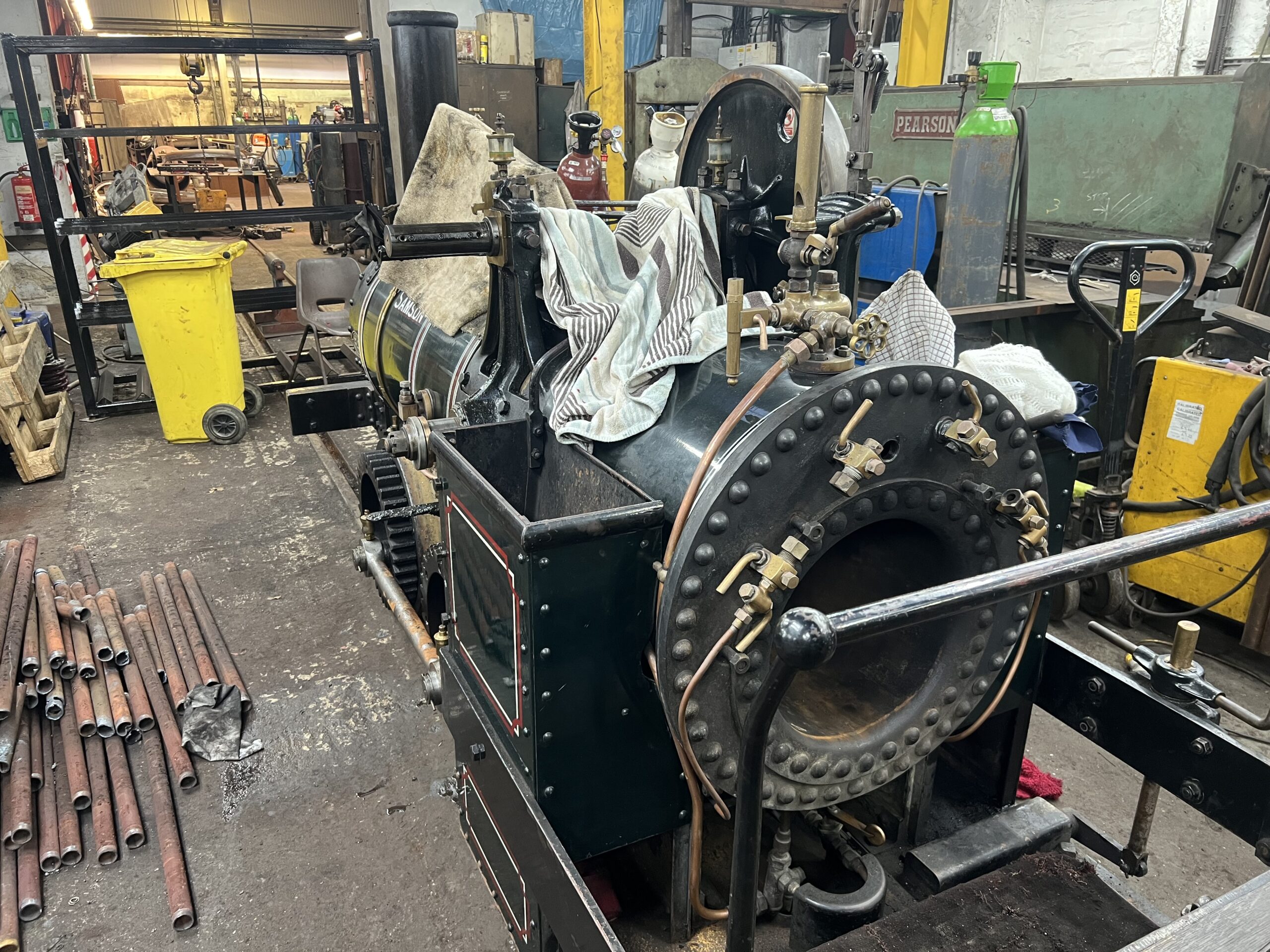 Work is underway on Samson’s retube, which is being carried out by Matt Ellis and some of his colleagues in their spare time at the Ffestiniog & Welsh Highland Railway works at Boston Lodge. Blog readers will recall that Matt was the Keeper of Transport at Beamish for several years before moving to the F&WHR to take on the role of Operations Manager. He has sent some detailed reports back on progress, so I’ll hand over to Matt for the update on Samson: