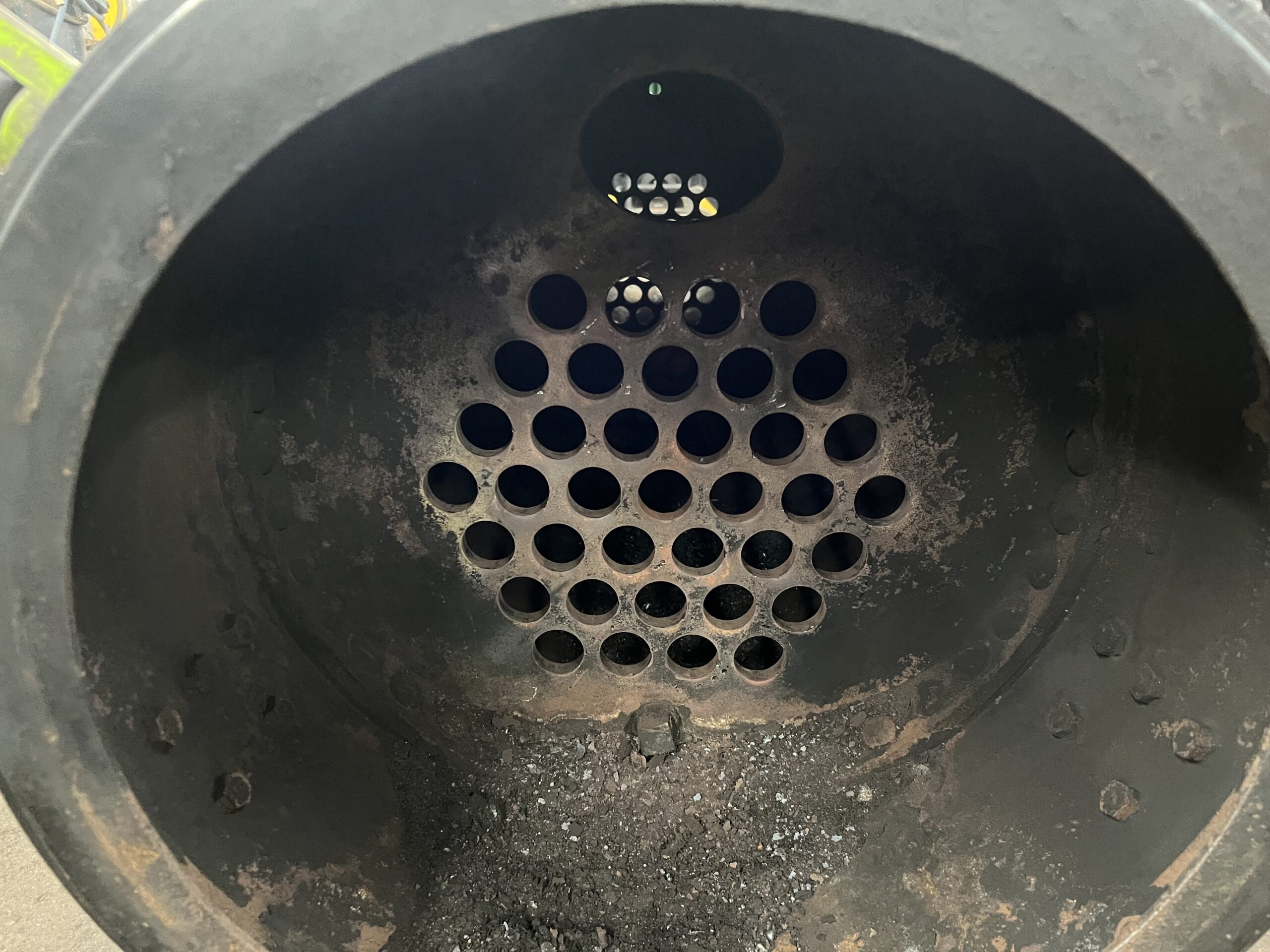 Below: The bare tube nest. The manhole referred to earlier can be seen above the tube nest. The boiler was now ready for vacuuming out of debris and then a final washout with water.