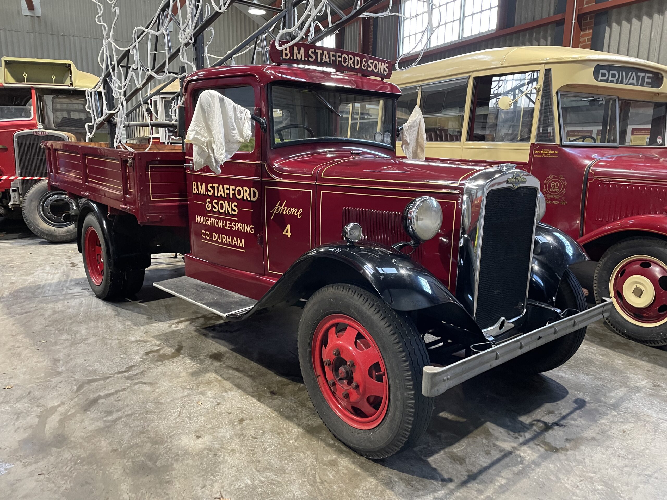 Below: At previous Christmas events we have seen Santa’s sleigh drawn by road steam locomotives and steam waggons, whilst this year he has this lovely Morris Commercial for motive power. This temporary resident has allowed us to compare it to our own Morris Commercial, and a plan is being formulated to carry out some work on the museum’s vehicle, including replacing the wings and carrying out some other cosmetic improvements as well as removing the van body and restoring it as a dropside lorry.