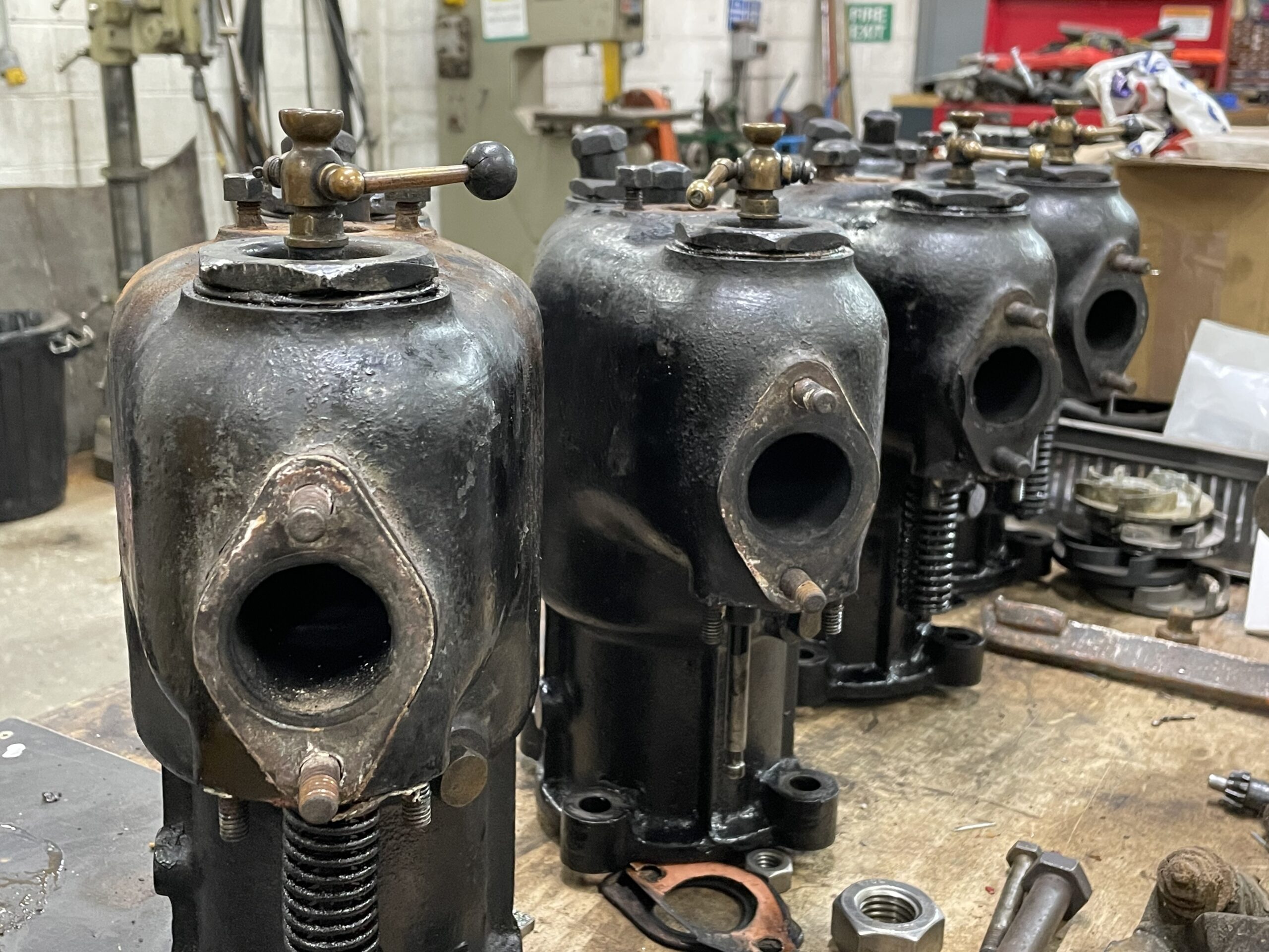 Below: The cylinders – separate castings with no ‘head’, as is conventional on later engines. Evidence of dual ignition has prompted a revision to the winter plan to look at including this within the work being undertaken, and also to look at whether a small pump to pressurise the fuel tank can be replicated/reproduced as well.