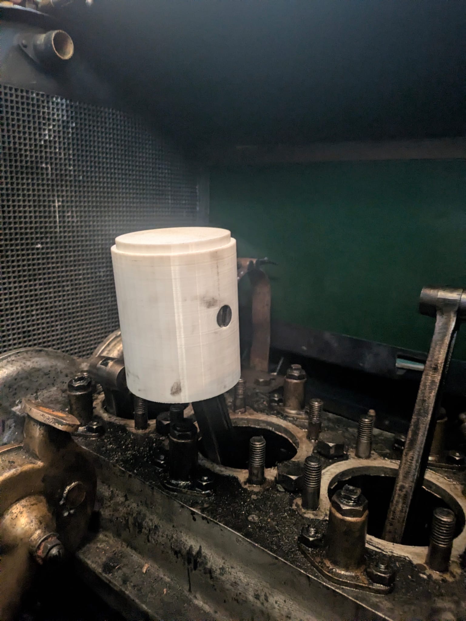 Below: Sam 3D printed a slightly enlarged piston, which was fitted into one of the cylinders to establish what the clearance for it would allow. Here is the design, being worked up ready for printing.
